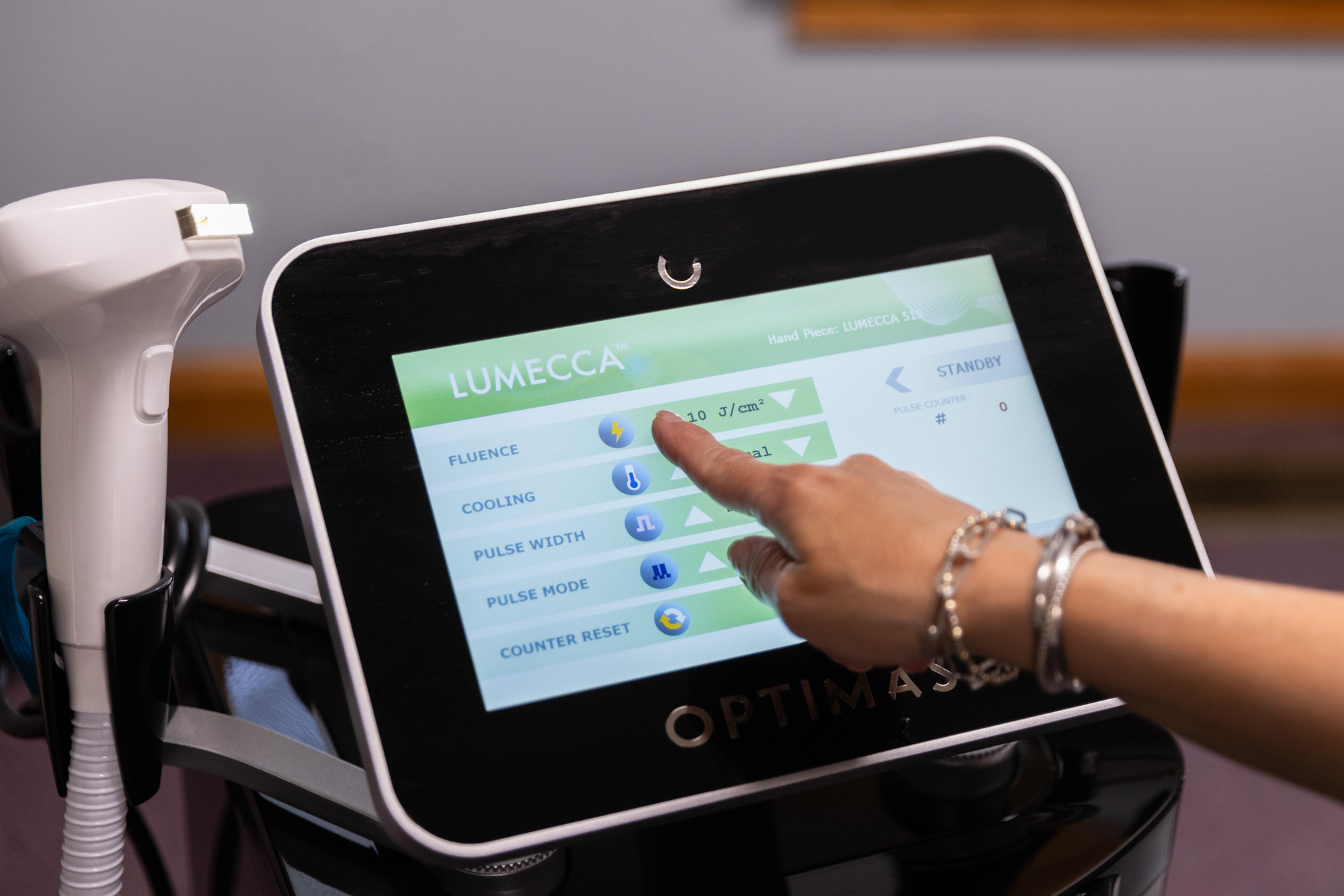 The Lumecca device sends powerful beams of light to your skin. Your skin absorbs this controlled light as heat, which targets pigmented cells with color (chromophores). The heat promotes your body’s natural healing process, which breaks down areas of unwanted pigment and irregular cells.